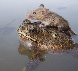 Ο φωτογράφος Azam Husain κατάφερε να απαθανατίσει με το φωτογραφικό του φακό μια πολύ ασυνήθιστη «συμμαχία» στο ζωικό βασίλειο, με ένα βάτραχο να… μεταφέρει στη ράχη του μέσα σε μια λίμνη ένα μικρό ποντικάκι!