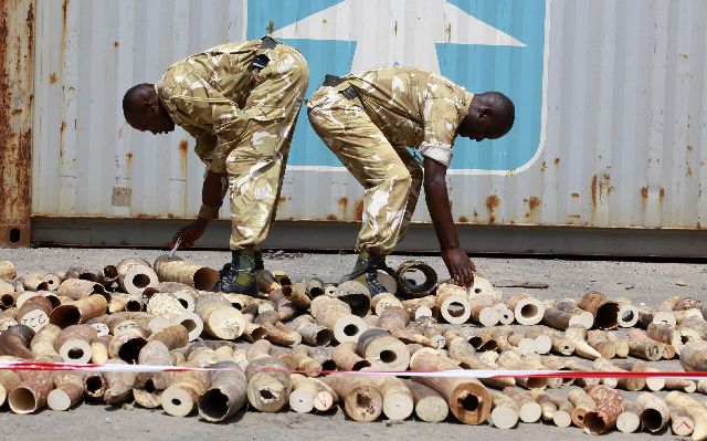 Κοντέινερ που περιείχε ελεφαντόδοντα κατέσχεσε η Υπηρεσία Άγριας Ζωής της Κένυας στη Μομπάσα.