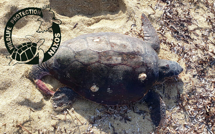 Ένα δυσάρεστο θέαμα αντίκρισαν οι άνθρωποι του Συλλόγου Προστασίας Άγριας Ζωής Νάξου, όταν ενημερώθηκαν από περαστικό για μια θαλάσσια χελώνα που είχε βγει στην παραλία του Αγίου Προκοπίου.