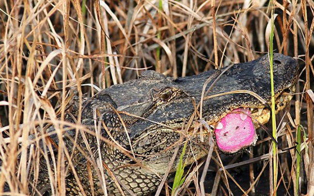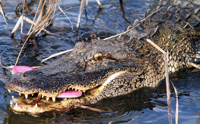 Όχι, δεν πρόκειται για το απομεινάρι κάποιου άτυχου που καταβροχθίστηκε από τον αλιγάτορα, αλλά για έναν παράξενο… μεζέ που επέλεξε το πεινασμένο ερπετό της φωτογραφίας.