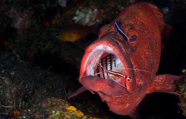 Ο λόγος για τις θαραλλέες γαρίδες, που έχουν αναλάβει το ρόλο του οδοντιάτρου των βυθών, καθαρίζοντας τα στόματα των ψαριών από παράσιτα και υπολείμματα τροφών.