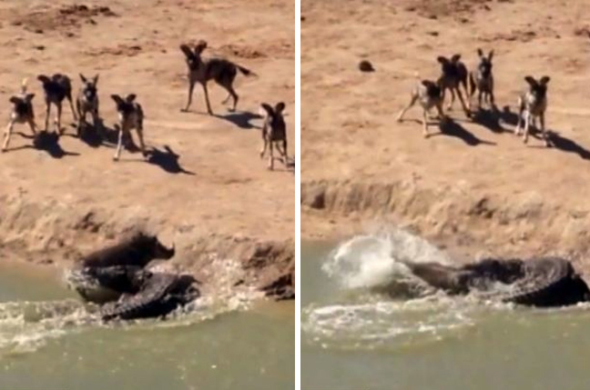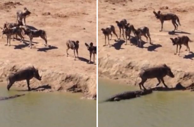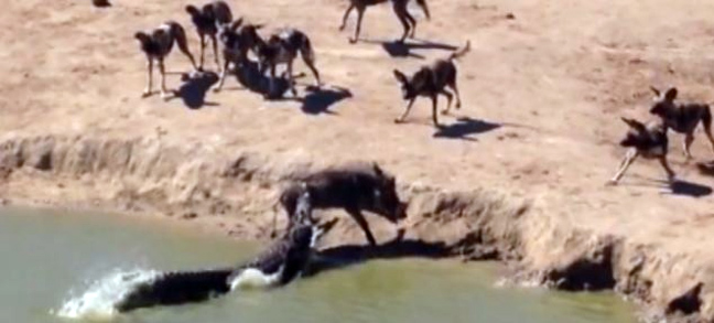 Απέναντι σε ένα κοπάδι πεινασμένα τσακάλια βρέθηκε ένας αγριόχοιρος σε νερόλακκο στην αφρικανική σαβάνα. Την ώρα που τα τσακάλια γλείφονται βλέποντας το επικείμενο γεύμα τους- έτσι νόμιζαν τουλάχιστον- ένας κροκόδειλος πετάχτηκε από το νερό και σήμανε το τέλος της άνισης μάχης που δεν άρχισε καν.