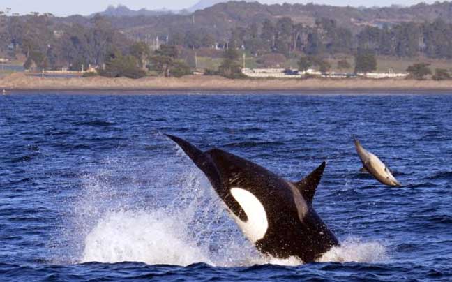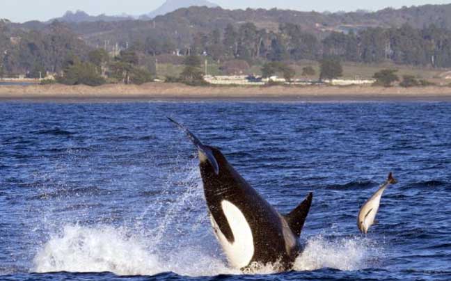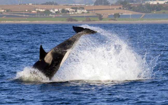 Στο δρόμο μιας όρκας βρέθηκε το άτυχο δελφίνι της φωτογραφίας, στη Santa Cruz της Καλιφόρνια, που ξαφνικά από το νερό βρέθηκε στον αέρα.