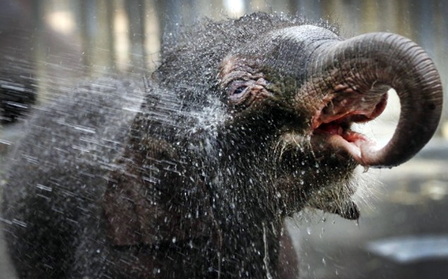 Δεν είναι παρά δύο εβδομάδων αλλά ήδη ξέρει πώς να απολαύσει στιγμές δροσιάς. Ο μικρός ελέφαντας της φωτογραφίας γεννήθηκε στις αρχές του μήνα στο ζωολογικό κήπο της Μελβούρνης και φαίνεται να περνάει υπέροχα κάτω από το «ντους» του.