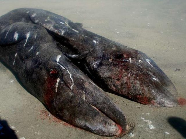 Επιστήμονες που κλήθηκαν για να εξετάσουν το νεκρό κήτος, ανέφεραν πως πρόκειται για το πρώτο καταγεγραμμένο περιστατικό στον κόσμο, σιαμαίων γκρίζων φαλαινών.