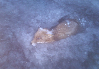 Αρχικά νόμιζε ότι είναι κάποιο σκουπίδι, όμως όταν πλησίασε περισσότερο αντίκρισε την αλεπού νεκρή και εγκλωβισμένη μέσα στην παγωμένη επιφάνεια της λίμνης.
