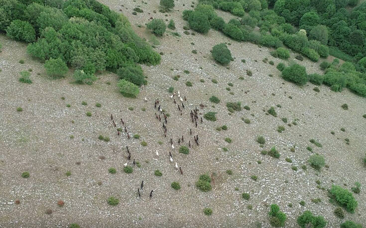 «Σε καταμετρήσεις που έγιναν με τη χρήση drone και από εποπτικά σημεία θέας στην περιοχή αλλά και μιλώντας με κτηνοτρόφους και υλοτόμους, διαπιστώσαμε ότι υπάρχει μια αγέλη με περίπου 70 άλογα, ανάμεσά τους και ένα πουλάρι, ενώ τις περασμένες δεκαετίες είχαν καταγραφεί μέχρι 200», αναφέρει στο ΑΠΕ-ΜΠΕ ο κ. Μπακαλούδης.