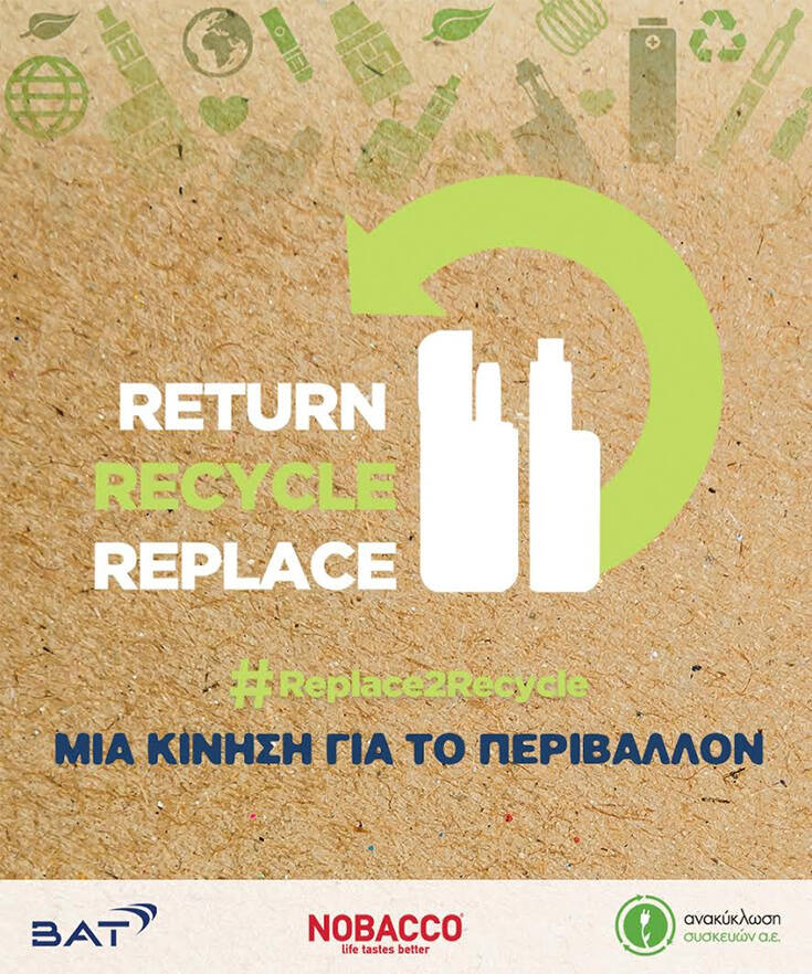 Η British American Tobacco Hellas, σε συνεργασία με την NOBACCO, ξεκινούν ένα πρωτοποριακό πρόγραμμα ανακύκλωσης συσκευών που χρησιμοποιούνται για τα εναλλακτικά στο κάπνισμα προϊόντα, τις συσκευές θερμαινόμενου καπνού, τις συσκευές ηλεκτρονικών τσιγάρων και τις κάψουλες των υγρών αναπλήρωσης.