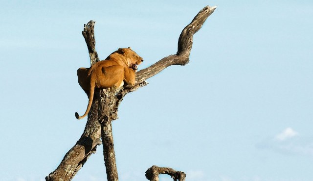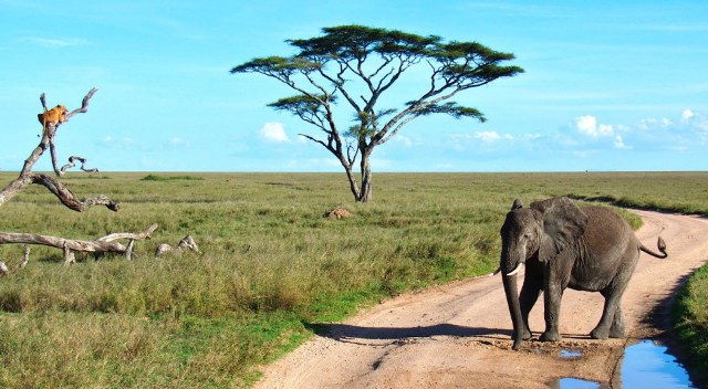 Επιστρέφοντας στους πρωταγωνιστές λοιπόν: μια λέαινα και ένας ελέφαντα στη σαβάνα του Serengeti στην Αφρική.