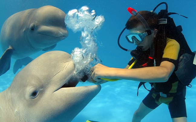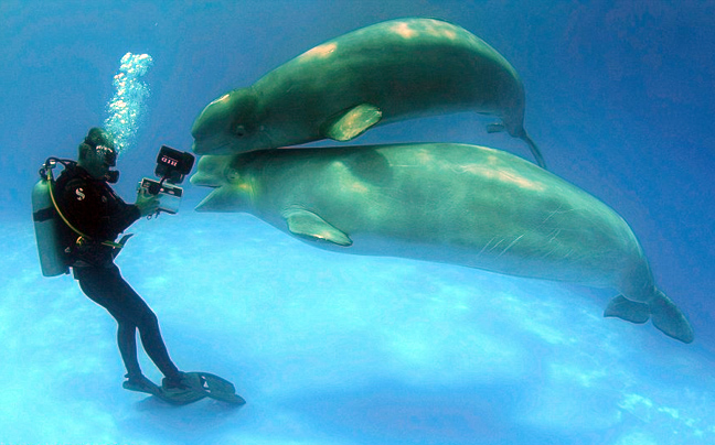 Ήθελε οπωσδήποτε να φαίνεται κι εκείνη στις φωτογραφίες που έβγαζε ο 42χρονος Andrey Nekrasov στο δελφινάριο Nemo στην Οδησσό. Έτσι βρήκε τον τρόπο: την ώρα που εκείνος φωτογράφιζε την αρσενική φάλαινα μπελούγκα ονόματι Plombir (που σημαίνει «παγωτό») η Sniezka (που σημαίνει «χιονόμπαλα» έκανε το πιο εντυπωσιακό photo bombing.