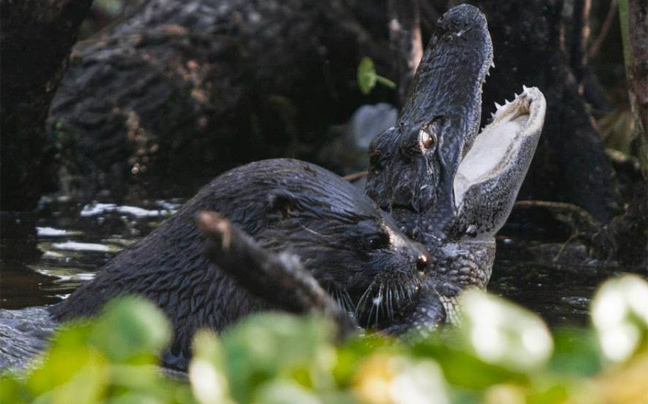 Αν κανείς σκεφτεί μια βίδρα κι έναν αλιγάτορα, προφανώς ο αλιγάτορας θα θεωρηθεί το πιο τρομακτικό από τα δύο ζώα. Όπως φαίνεται όμως στις φωτογραφίες που ακολουθούν, η βίδρα αναδείχθηκε νικήτρια καταβροχθίζοντας έναν νεαρό αλιγάτορα που δεν είχε καμία τύχη.