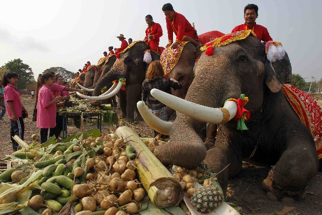 Την Εθνική Ημέρα του Ελέφαντα γιορτάζει σήμερα η Ταϊλάνδη και φυσικά οι ελέφαντες έχουν την τιμητική τους. Στην παλιά πρωτεύουσα της χώρας Ayutthaya, στήνεται ένας ολόκληρος «μπουφές» για ελέφαντες, με φρούτα και λαχανικά.