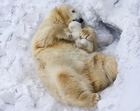 Όμως όλα της φαίνονταν περίεργα, έτσι η μαμά αρκούδα χρειάστηκε να την… κουβαλήσει μόνη της έξω και να την «παρουσιάσει» στους επισκέπτες του πάρκου Novosibirsk Zoo.