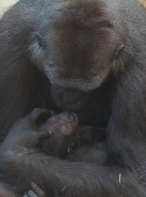 Ο μικρός γορίλλας της φωτογραφίας αντίκρισε τον κόσμο για πρώτη φορά μόλις πριν από δύο ημέρες, στις 26 Οκτωβρίου.