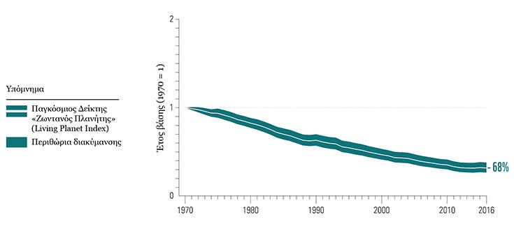 Ο Δείκτης αποτυπώνει την τάση για σχεδόν 21.000 πληθυσμούς περισσότερων από 4.000 ειδών σπονδυλόζωων στο διάστημα μεταξύ 1970 και 2016, με τη συμβολή πάνω από 125 ειδικών από όλο τον κόσμο. Συγκεκριμένα, μέσα σε αυτά τα 46 χρόνια, καταγράφεται μείωση 68% κατά μέσο όρο στο μέγεθος των πληθυσμών θηλαστικών, πτηνών, αμφιβίων, ερπετών και ψαριών διεθνώς.