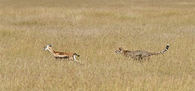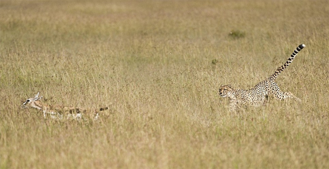 Όπως περιγράφει ο φωτογράφος στη Daily Mail, το κυνήγι ήταν επιτυχημένο και το τσιτάχ γευμάτισε. Λίγο αργότερα ωστόσο μία ύαινα διεκδίκησε και απέσπασε ό,τι είχε απομείνει από το θήραμα.