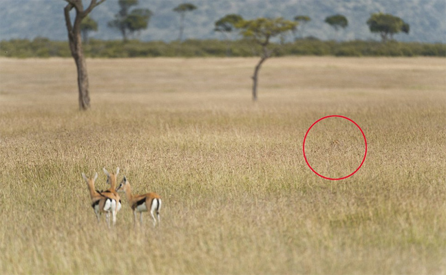 Μοιάζει σαν μια συνηθισμένη ανέμελη στιγμή στην περιοχή Μασάι Μάρα της Κένυας με τρεις γαζέλες να ατενίζουν το τοπίο. Αν μπορεί κανείς να διακρίνει τον εκνευρισμό και την ετοιμότητά τους είναι επειδή καλά κρυμμένο, απόλυτα καμουφλαρισμένο μέσα στο τοπίο, παραφυλάει ένα τσιτάχ.