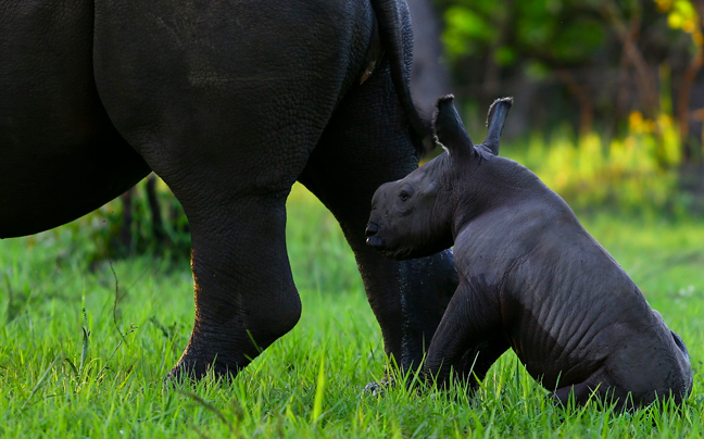 Όπως με όλα τα νεογέννητα, όλων των ειδών, ο μικρός ρινόκερος που αντίκρυσε μόλις πριν λίγες ώρες για πρώτη φορά τον κόσμο, δεν ξεκολλά από τη μαμά του.