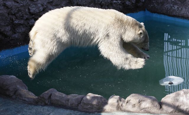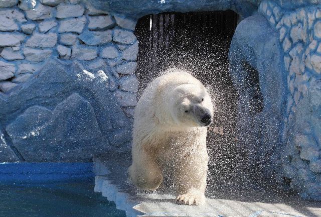 Η θερμοκρασία άρχισε να ανεβαίνει και έφτασε η ώρα για τα πρώτα μπάνια της σεζόν για την Aurora και τη Victoria, τις δύο πολικές αρκούδες στο ζωολογικό κήπο Royev Ruchey στην πόλη Κράσνογιαρσκ της Σιβηρίας.