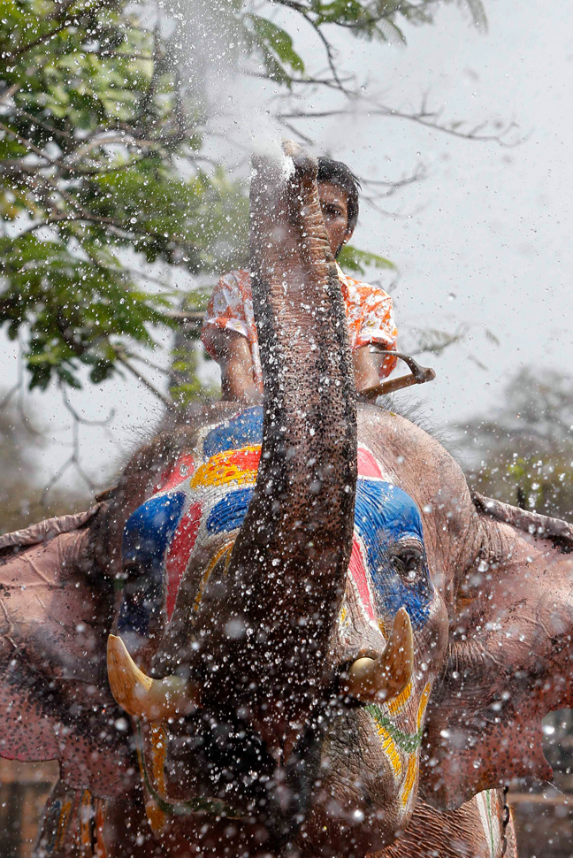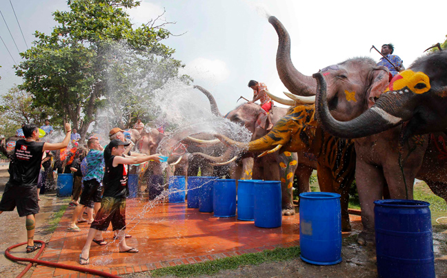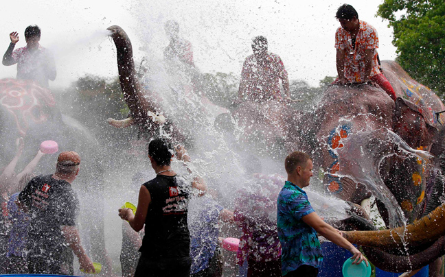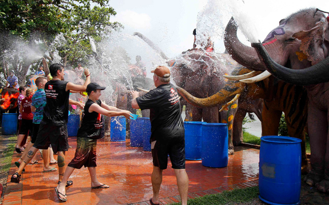 Το… μπουγέλο με ελέφαντες φαίνεται πως είναι η βασική εκδήλωση στο φεστιβάλ Songkran στην Ταϊλάνδη. Είναι η πιο μεγάλη γιορτή, εξηγεί το Reuters, καθώς σηματοδοτεί την έναρξη του παραδοσιακού Νέου Έτους στη χώρα.