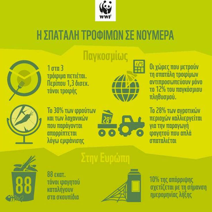 Στην τεράστια σπατάλη τροφίμων στην ΕΕ, όπου 88 εκατ. τόνοι τροφής καταλήγουν στα σκουπίδια ετησίως αναφέρεται έκθεση της οργάνωσης WWF. Σύμφωνα με τη WWF Ελλάς, η σπατάλη τροφίμων κοστίζει περίπου 143 δισ. ευρώ στην ευρωπαϊκή οικονομία κάθε χρόνο, ενώ ευθύνεται για το 15% των εκπομπών αερίου του θερμοκηπίου που σχετίζονται με την εφοδιαστική αλυσίδα.