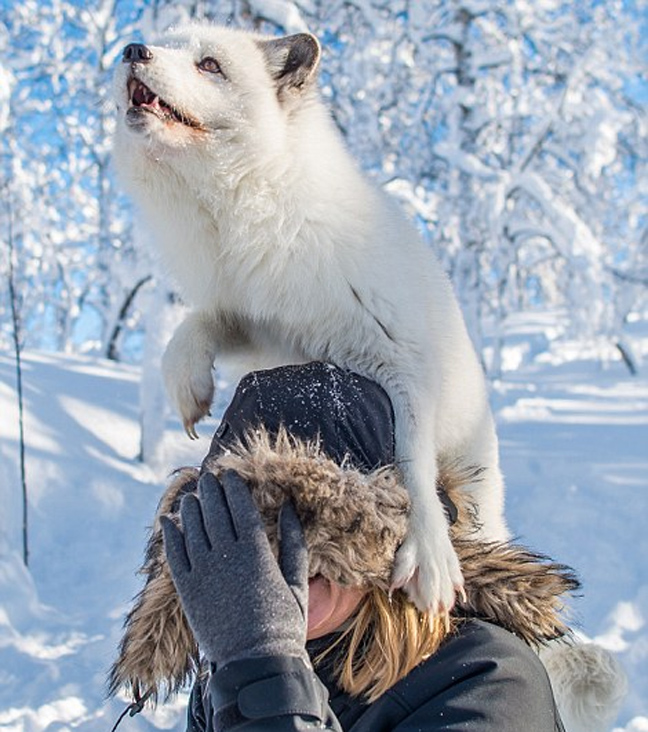Ο φωτογράφος Pål Jakobsen ήταν έτοιμος με τη μηχανή ανά χείρας και περίμενε την ευκαιρία να βγάλει καλές φωτογραφίες με αρκτικές αλεπούδες, στο πάρκο Polar Park Arctic Wildlife Centre στη Νορβηγία. Αλλά δεν περίμενε να βρει μια τόσο… διαθέσιμη και φωτογενή αλεπού όπως αυτή που σκαρφάλωσε στο… κεφάλι της φίλης του Lene Kvandal διεκδικώντας έναν μεζέ.