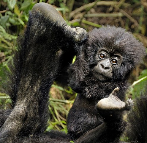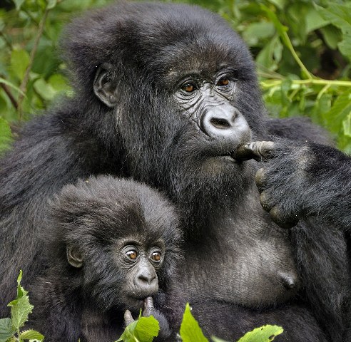 Ο μικρός θηλυκός γορίλας προσπαθεί να… αναρριχηθεί επάνω στη μαμά του, μαθαίνοντας βασικές κινήσεις και πιασίματα που αργότερα θα του φανούν πολύ χρήσιμα στη ζωή του.