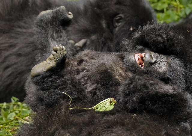 Το παιχνιδιάρικο γοριλάκι μάλιστα φάνηκε να απολαμβάνει ιδιαίτερα τις στιγμές δίπλα στο «στήριγμά» του… ξεσπώντας σε δυνατά γέλια.