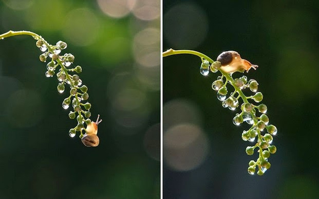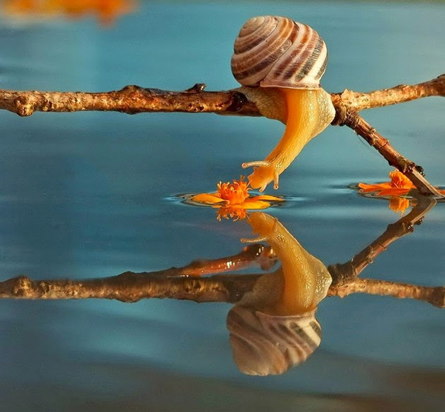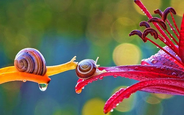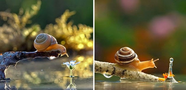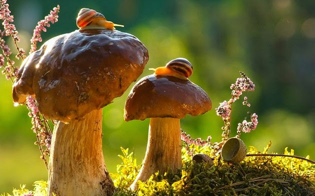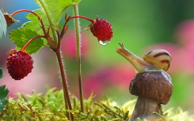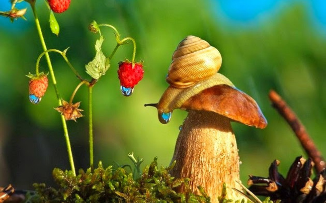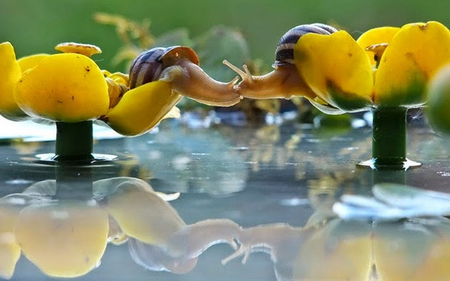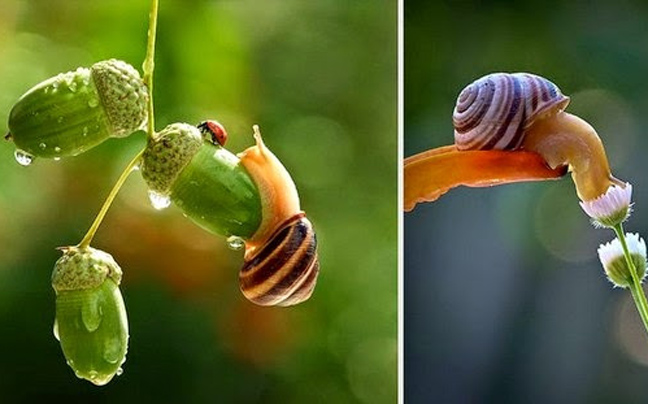 Πρωταγωνιστές στα μοναδικά καρέ του Mishchenko είναι σαλιγκάρια, μαλάκια, έντομα και αμφίβια.