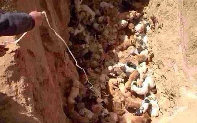 Περίπου εκατό σκύλοι πετάχτηκαν σε λάκκο βάθους περίπου 6 μέτρων που φαίνεται να ανοίχτηκε με τη χρήση βαρέων μηχανημάτων, κάτι που δείχνει πως ίσως κυβερνητικοί αξιωματούχοι να βρίσκονται πίσω από τη φρικτή αυτή πράξη, σύμφωνα με τους ακτιβιστές.