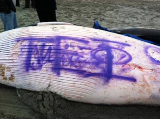 Ένα εξωφρενικό περιστατικό tagging συνέβη στις ΗΠΑ, όπου ανεγκέφαλοι έβαψαν το σώμα μιας φάλαινας που εκβράστηκε την Πρωτομαγιά στις ακτές της Πολιτείας του Νιου Τζέρσεϋ στις ΗΠΑ.