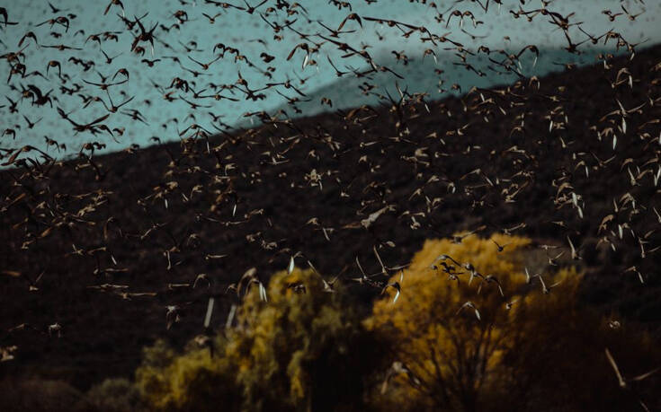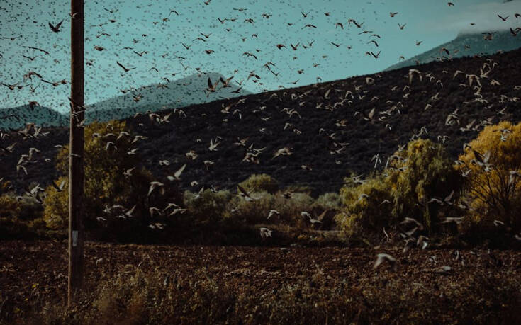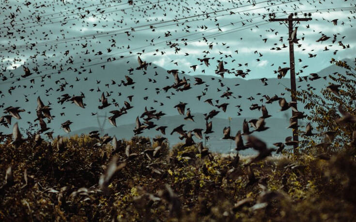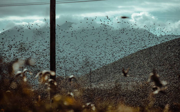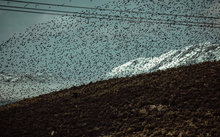 Ένα τεράστιο σμήνος από ψαρόνια, γνωστά και ως γκαραβέλια, έκαναν μια υθμική βόλτα πάνω από την επαρχιακή οδό Λαμίας – Λειβαδιάς, στος ύψος της Χαιρώνιας.
