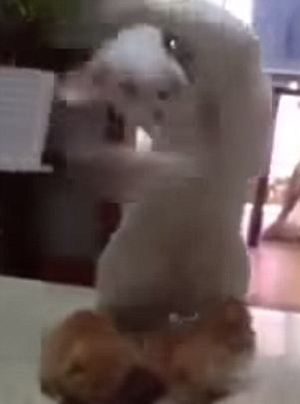 Πάντως, το μάθημα διακόπτεται απότομα, όταν μια άλλη γάτα, προφανώς η μητέρα των μικρών, εμφανίζεται στην κουζίνα.