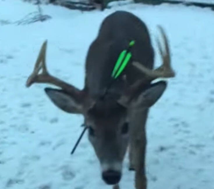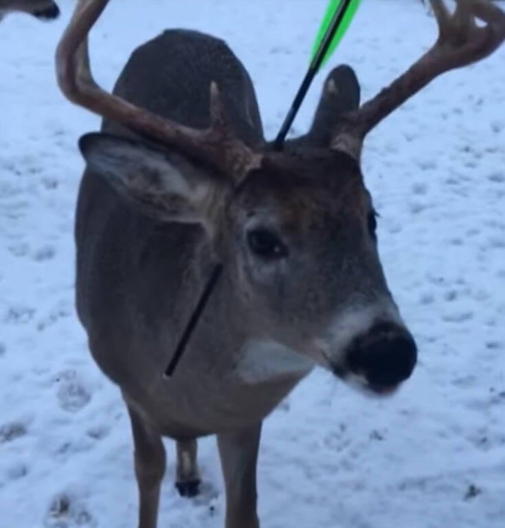 Με το βέλος στο κεφάλι τον είδαν την περασμένη εβδομάδα. Παρά το σοκαριστικό τραύμα πάντως, το ελάφι μοιάζει καλά στην υγεία του, παρατηρεί πάντα η φωτογράφος. Ούτε αίμα είδε στην πληγή, ούτε και σημάδια μόλυνσης.