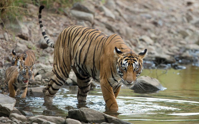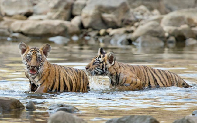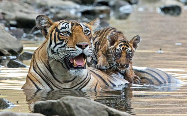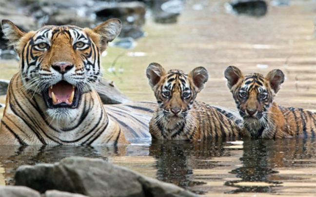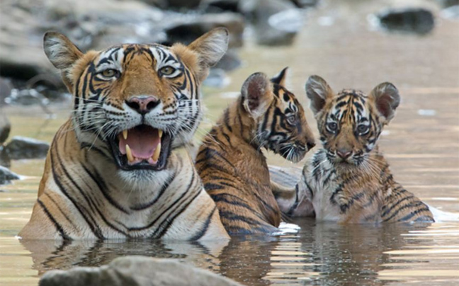 Μια όαση δροσιάς έψαχνε για να μην πάθουν τίποτα τα μικρά της από τον καύσωνα και τη βρήκε στο Ρατζαστάν της Ινδίας. Μια μαμά-τίγρης έκανε μπάνιο στο Εθνικό Πάρκο της πόλης και απαθανατίστηκε σε τρυφερές στιγμές με τα πιτσιρίκια της.