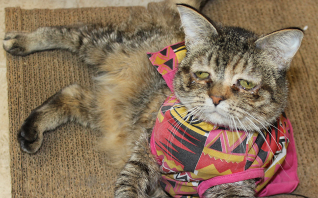 Ένα κέντρο υιοθεσίας ζώων στην Ουάσινγκτον προσπαθεί να βρει κάποιον που θα την προσέχει και θα την φροντίζει. Η Tucker όμως δείχνει συνεχώς λυπημένη λόγω κάποιων γενετικών ανωμαλιών. Το δέρμα της τιγρέ γατούλας είναι επίσης πολύ λεπτό και μελανιάζει εύκολα, ενώ υποφέρει από τριχόπτωση κάτι που σημαίνει ότι πρέπει να φορά ένα προστατευτικό μπλουζάκι.