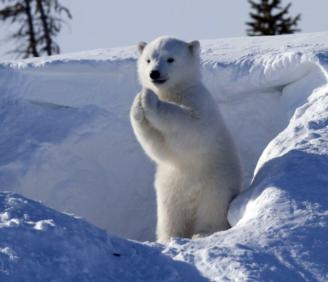 Στέκεται στα δύο της πόδια, γέρνει το κεφάλι και χαιρετάει την κάμερα. Τις αξιολάτρευτες φωτογραφίες τράβηξε ο 43χρονος Greg Harvey, από το Wapusk National Park στη Μανιτόμπα, στον Καναδά.