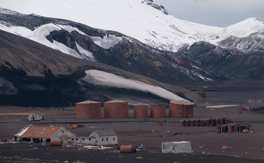Το ηφαίστειο μέσα σε δύο χρόνια εξερράγη δύο φορές, καταστρέφοντας τα πάντα στο πέρασμά του, συμπεριλαμβανομένου ενός «νεκροταφείου» 45 εγκαταλελειμμένων φαλαινοθηρικών και ενός ερημωμένου υπόστεγου αεροσκαφών.