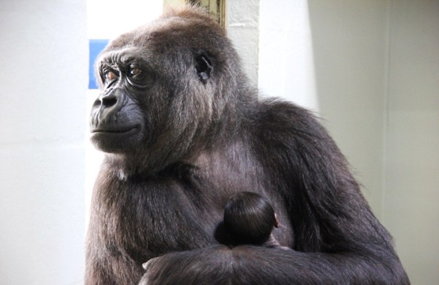 Η Mbeli, ένας θηλυκός γορίλλας που γεννήθηκε στο ζωολογικό κήπο το 2003, έφερε στον κόσμο ένα αρσενικό γοριλλάκι.