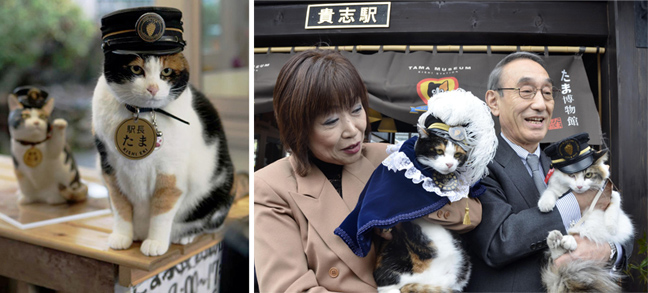 Η Tama είναι μια γάτα από την Ιαπωνία που έγινε παγκόσμια είδηση το 2007, όταν της απονεμήθηκε η θέση του σταθμάρχη στην πόλη Kinokawa! Γιατί συνέβη αυτό; Ήταν το 2006 όταν η διαχειρίστρια εταιρία του σιδηροδρομικού σταθμού αποφάσισε να περικόψει τις θέσεις εργασίας στον σταθμό, αυτοματοποιώντας τη λειτουργία του, κάτι που θα άφηνε την Tama και τις άλλες αδέσποτες γάτες του σταθμού χωρίς τροφή, καθώς συνήθιζαν να τις ταΐζουν οι εργαζόμενοι. Κι έτσι για να μην πεθάνει από την πείνα, η εταιρία αναγκάστηκε να την προσλάβει(!), δίνοντάς της τη θέση του σταθμάρχη και πληρώνοντάς τη φυσικά σε κονσέρβες. Με το καπέλο και τη στολή της, η νέα σταθμάρχισσα έγινε διασημότητα, μαγνητίζοντας τον κόσμο: στον πρώτο κιόλας μήνα στα νέα της καθήκοντα, η κίνηση του σταθμού αυξήθηκε κατά 17%, κάτι που ανάγκασε την εταιρία να προάγει την αξιολάτρευτη γάτα το 2008, δίνοντάς της πια δικό της γραφείο αλλά και δύο γατίσιους βοηθούς. Και σαν να μην έφτανε αυτό, το 2012 η δημοτικότητα της Tama (αλλά και η κίνηση του σταθμού) αυξήθηκαν σε τέτοιον βαθμό που η φίρμα της έδωσε πια και ανθρώπινο βοηθό, ενώ ένας από τους συρμούς βάφτηκε σύμφωνα με την αφεντιά της! Γάτα προϊστάμενος δηλαδή που ζει ζωή χαρισάμενη. Αν δεν ήταν τόσο αξιολάτρευτη, πολλοί θα ζήλευαν την τύχη της…