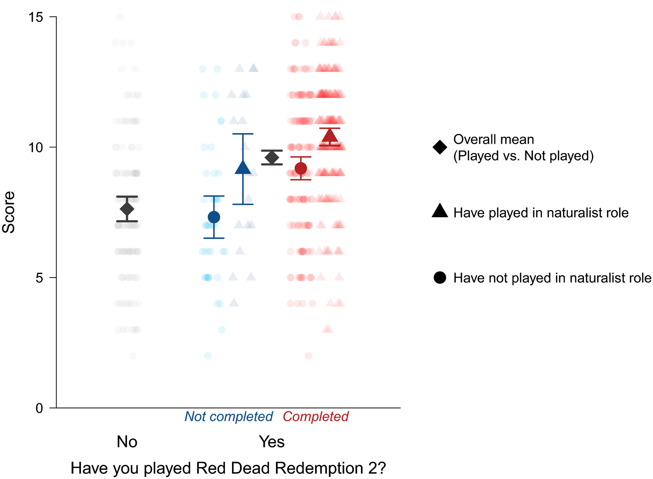 Η διαφορά ήταν μεγαλύτερη για τα ζώα που είναι χρήσιμα στο παιχνίδι, όπως τα ψάρια που τρώει ο πρωταγωνιστής. Όσοι είχαν τερματίσει το παιχνίδι, όσοι το είχαν παίξει πρόσφατα και όσοι είχαν αναλάβει ρόλο conservationist στην online εκδοχή του RDR2, είχαν πολύ μεγαλύτερο σκορ από τους υπόλοιπους. Αρκετοί μάλιστα δήλωσαν πως έμαθαν για τη συμπεριφορά ορισμένων ειδών και για την οικολογία γενικότερα από το RDR2.