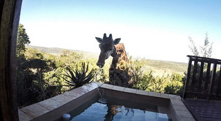 Μια καμηλοπάρδαλη αποφάσισε να σβήσει τη δίψα της στην πισίνα του δωματίου τους… και δεν την ενδιέφερε τίποτε άλλο…