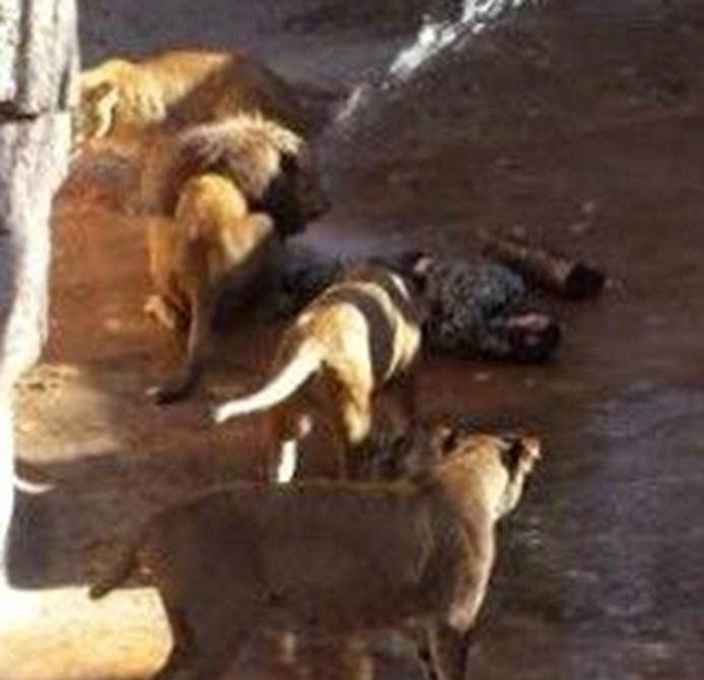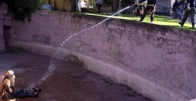 Οι εικόνες που κατέγραψε κάμερα κινητού τηλεφώνου δείχνουν τα τρία λιοντάρια να τον σέρνουν σε ένα διάδρομο και να πέφτει ένα επίπεδο πιο κάτω. Οι αστυνομικοί, οι πυροσβέστες και οι υπάλληλοι του ζωολογικού κήπου χρειάστηκαν περίπου 30 λεπτά για να απομακρύνουν τα ζώα από τον άνδρα και να καταφέρουν να τον ανασύρουν από το κλουβί, με το σώμα του γεμάτο γρατσουνιές και δαγκώματα.