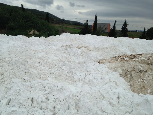 Μεγάλες ποσότητες στερεών αποβλήτων και σκόνης ανθρακικού ασβεστίου έριχνε σε χωράφι στο Καβαλάρι Θεσσαλονίκης μια επιχείρηση επεξεργασίας μαρμάρων.
