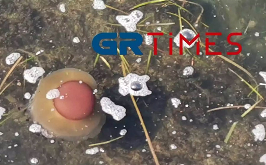 Μέδουσες σε σχήμα και χρώμα που θυμίζουν τηγανητό αυγό έκαναν την εμφάνισή τους στον Θερμαϊκό, με πολλούς από τους περαστικούς να σπεύδουν να βγάζουν φωτογραφίες για να απαθανατίσουν τα θαλάσσια πλάσματα.