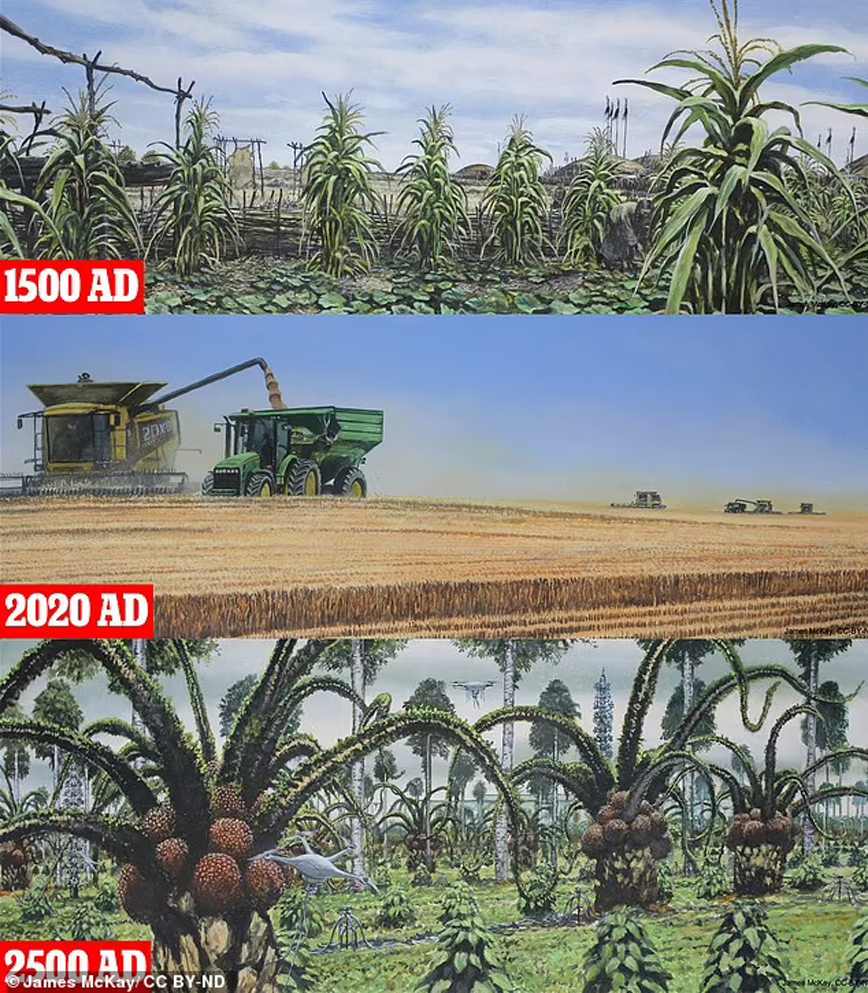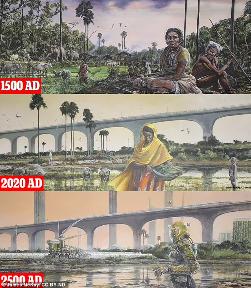 Η ομάδα στη συνέχεια απεικόνισαν τα χειρότερα σενάρια τους – μαζί με τα σκίτσα της ζωής το 1500 μ.Χ. και το παρόν – για να τονίσουν πόσο εξωγήινη θα μπορούσε να είναι η μελλοντική Γη.