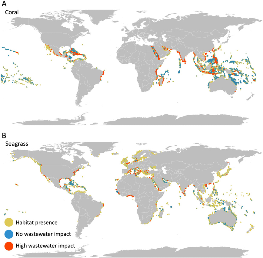 Οι ερευνητές που χαρτογράφησαν τις περιοχές με κοραλλιογενείς υφάλους και θαλάσσια χόρτα συναντούσαν επίσης σημεία παραγωγής αζώτου. Διαπίστωσαν ότι τμήματα της Κίνας, της Κένυας, της Αϊτής, της Ινδίας και της Υεμένης είναι πιθανό να έχουν επηρεαστεί από τα κοράλλια από τα παράνομα λύματα, ενώ σημεία έκθεσης σε θαλάσσιο χόρτο εντοπίστηκαν στην Γκάνα, το Κουβέιτ, την Ινδία, τη Νιγηρία και την Κίνα. Αυτό, ωστόσο, μπορεί να είναι απλώς η κορυφή του παγόβουνου και είναι πιθανό να έχει αρνητικό αποτέλεσμα σε όλο το ευρύτερο οικοσύστημα.