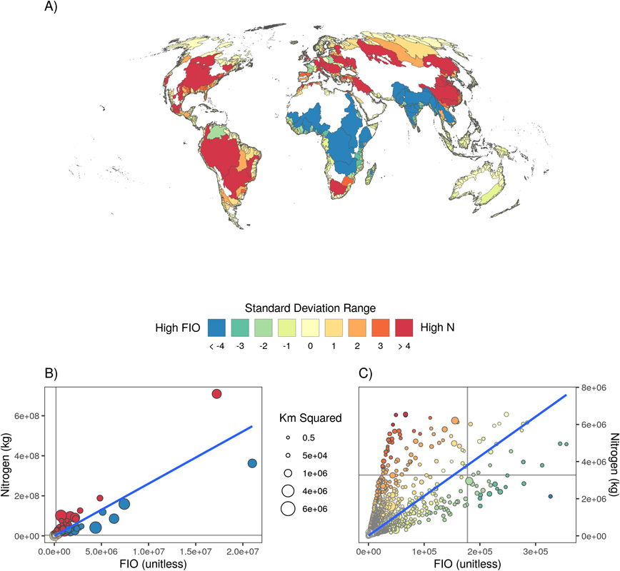 Μόλις 25 λεκάνες απορροής προσφέρουν σχεδόν το ήμισυ του αζώτου των λυμάτων. Αυτές οι λεκάνες απορροής συγκεντρώθηκαν κυρίως στην Ινδία, την Κορέα και την Κίνα, με τον διαβόητο μολυσμένο ποταμό Yangtze να συνεισφέρει στο 11% του παγκόσμιου συνόλου. Για το μεγαλύτερο μέρος του κόσμου, τα περισσότερα λύματα υποβλήθηκαν σε κάποια επεξεργασία, αλλά τα ακατέργαστα λύματα παρέμειναν ένα σημαντικό πρόβλημα για ορισμένες χώρες, όπως η Κίνα, η Ινδία και ορισμένα αφρικανικά έθνη.