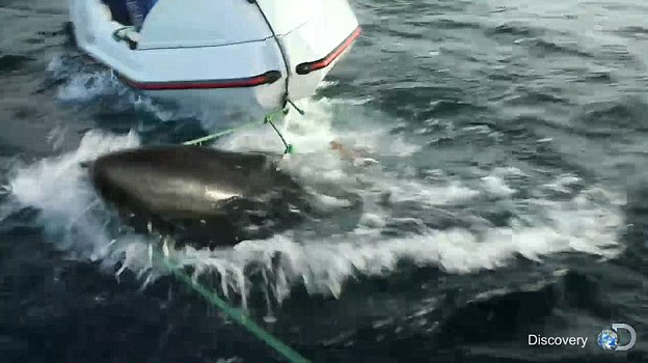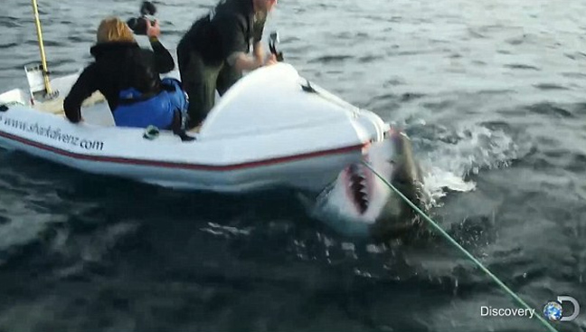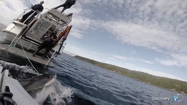 Στόχος τους ήταν να καταφέρουν να τοποθετήσουν μία κάμερα στο πτερύγιο του καρχαρία, αλλά κάποια στιγμή εκείνος αποφάσισε να στραφεί προς το σκάφος και να δαγκώσει το σχοινί με το οποίο ήταν δεμένο το βαρκάκι.