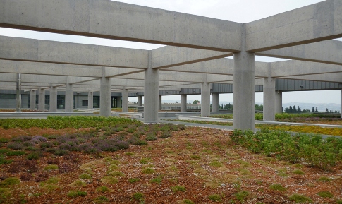 Το νέο κτίριο της Τράπεζας της Ελλάδος, που βρίσκεται ανατολικά της Θεσσαλονίκης, φιλοξενεί τη μεγαλύτερη πράσινη ταράτσα της χώρας. Πρόκειται για μια έκταση περίπου 2.000 τ.μ. που καλύφθηκε με 80 είδη της ελληνικής χλωρίδας.